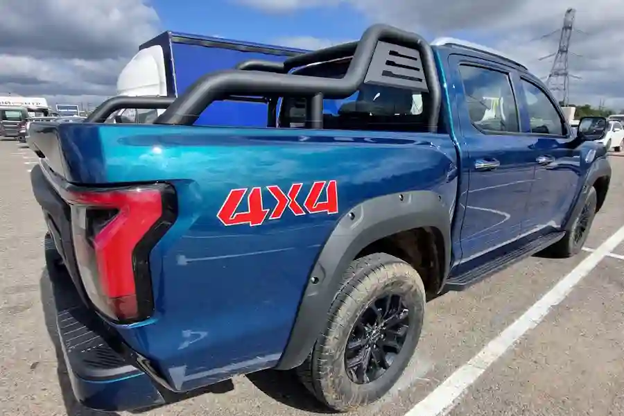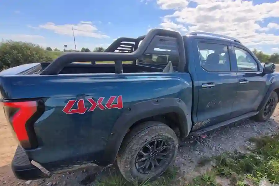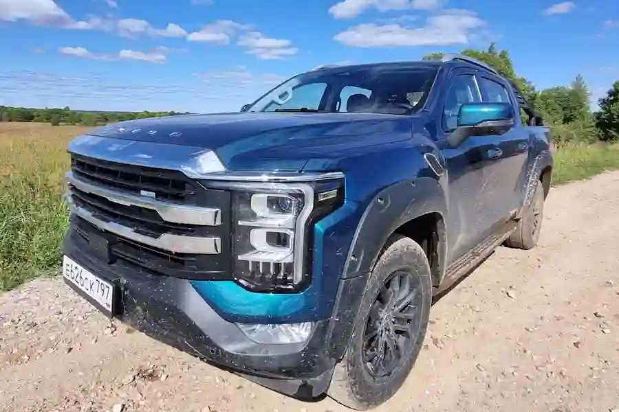 Внешне автомобиль очень похож на своих американских собратьев. Китайские дизайнеры явно вдохновлялись американским Ford F-150, особенно это заметно в передней части автомобиля. Однако, в техническом плане машины совсем разные. Для этого достаточно заглянуть под капот. Там конечно же нет никакого бензинового пожирателя топлива в конфигурации V8, в моторном отсеке стоит скромный турбодизель объемом 2 литра, развивающий 159 л.с. при 410 Нм крутящего момента. Но дизель работает в паре с 48 вольтовой гибридной системой, которая прибавляет еще 60 Нм.