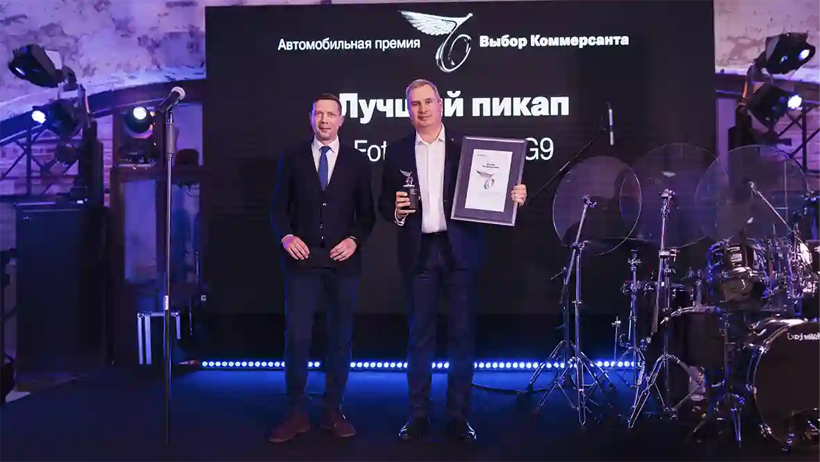 FOTON TUNLAND G9 стал победителем автомобильной премии «Выбор Коммерсанта» в номинации «Пикап года». Награда присуждена в рамках ежегодной церемонии, посвящённой ключевым достижениям и успешным проектам автомобильного рынка России. FOTON TUNLAND G9 представлен на российском рынке компанией «МБ РУС», являющейся эксклюзивным дистрибьютором пикапов и фургонов FOTON в России.
