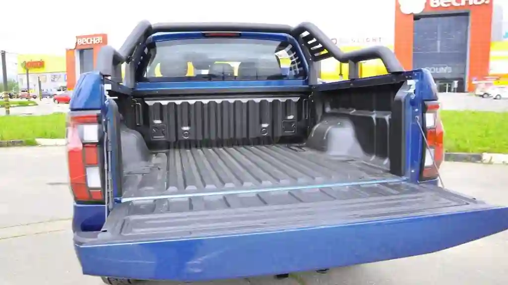 Новинка, помимо классической внешности полноразмерного рамного пикапа, обладает типичной для машин такого класса задней рессорной подвеской, в пакете по три листа. Задний мост грузоподъемностью 725 кг. Предположу, что по факту наверняка получится нагрузить больше заявленной цифры.